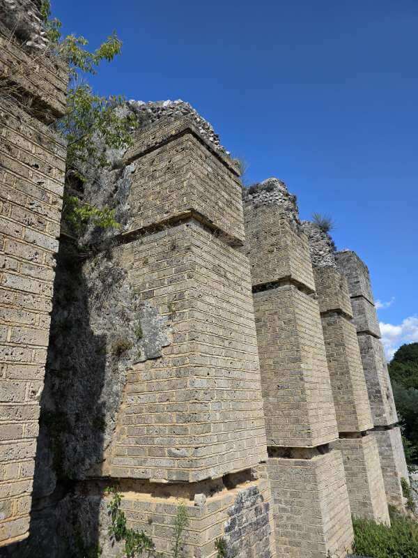 Those traveling along the modern Via Salaria can admire, even from a distance, the imposing Roman terraced wall that characterizes the complex. Approximately 60 meters long and over 11 meters high, the wall is marked by thirteen niches and fourteen buttresses that support the remains of the rooms above, built in reticulated masonry.