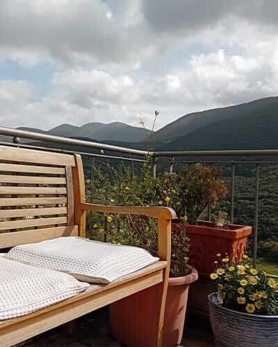 Qui il soggiorno diventa esperienza e ogni ospite può riscoprire la bellezza delle cose semplici: una passeggiata nel Borgo al tramonto, il privilegio di una colazione con vista sui monti, una lettura o una conversazione davanti al camino.