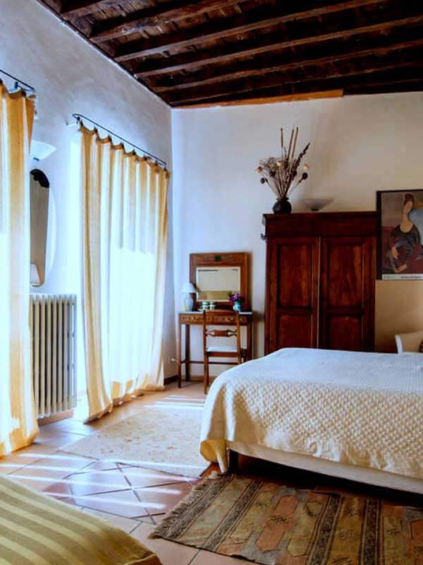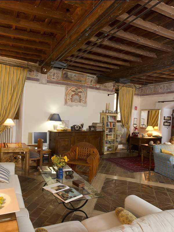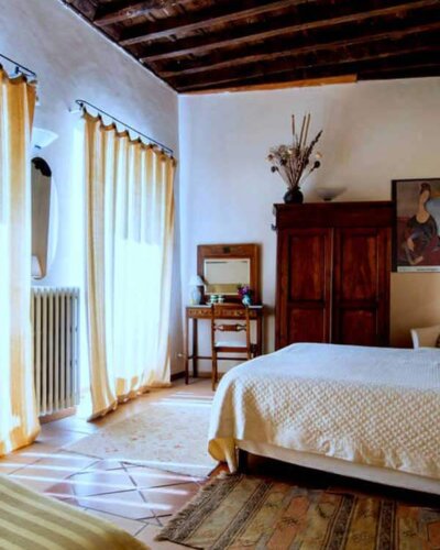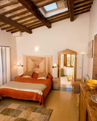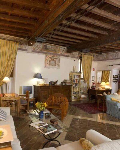 Qui ogni camera – con bagno privato e affacci romantici sui tetti del borgo o sulla valle – è pensata per offrire quiete, intimità e ispirazione. Gli spazi comuni, come il salotto affrescato con camino in pietra, la terrazza panoramica e la sala per la colazione con travi a vista, uniscono la sobrietà del passato all’eleganza essenziale di oggi, creando un’atmosfera familiare e raffinata allo stesso tempo.