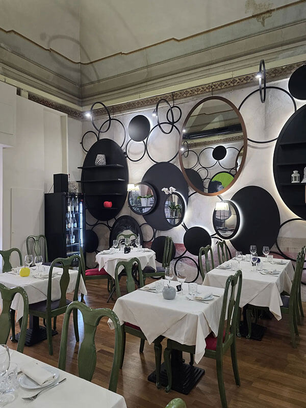 All’interno degli antichi spazi di Palazzo Vincenti Mareri, l’osteria accoglie gli ospiti in un ambiente autentico e conviviale, dove la qualità nasce dalla cura dei dettagli e dalla ricerca costante delle eccellenze locali.