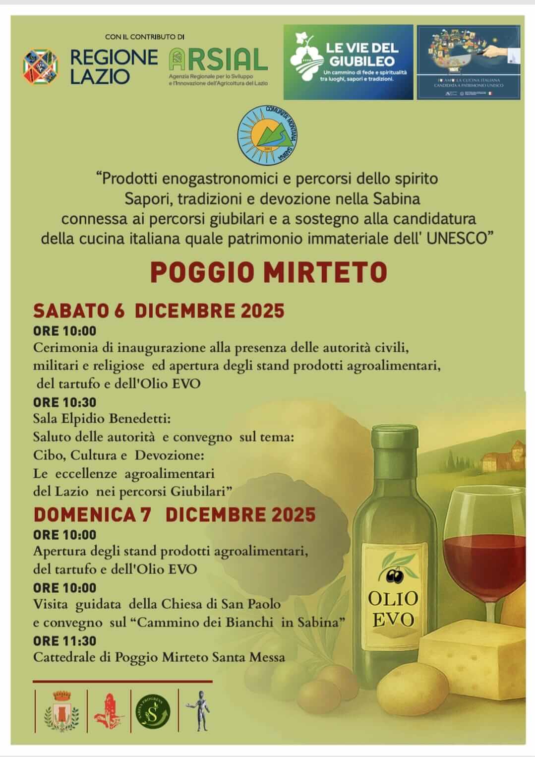 27 Novembre PRODOTTI ENOGASTRONOMICI E PERCORSI DELLO SPIRITO SAPORI, TRADIZIONI E DEVOZIONE NELLA SABINA – POGGIO MIRTETO 0