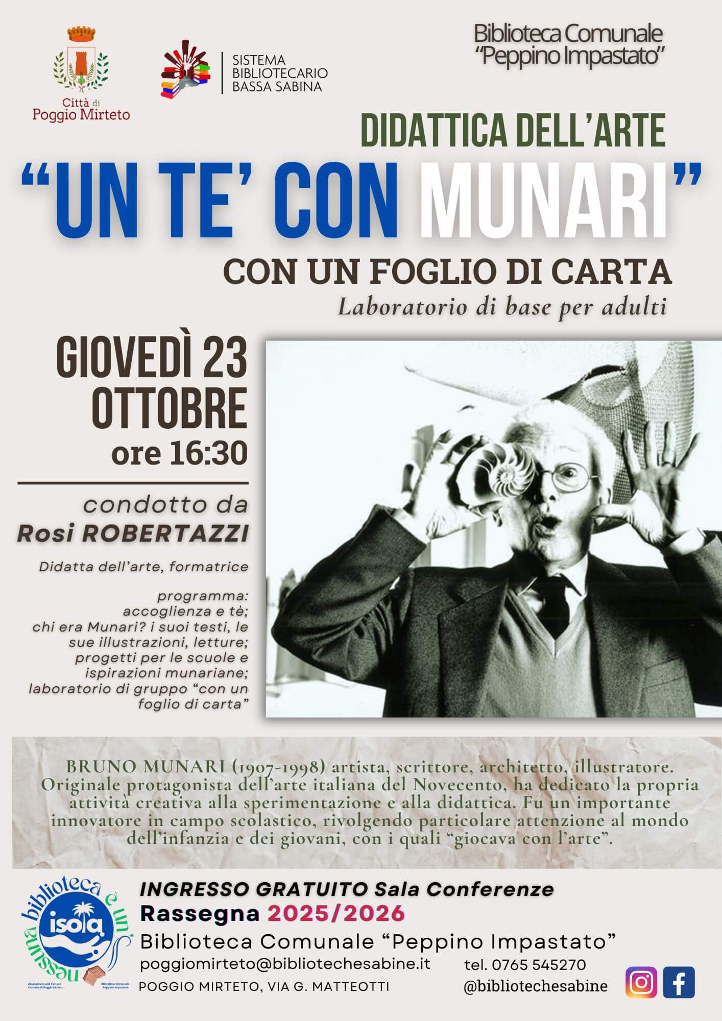 UN TE’ CON MUNARI, LABORATORIO DI BASE PER ADULTI – BIBLIOTECA POGGIO MIRTETO